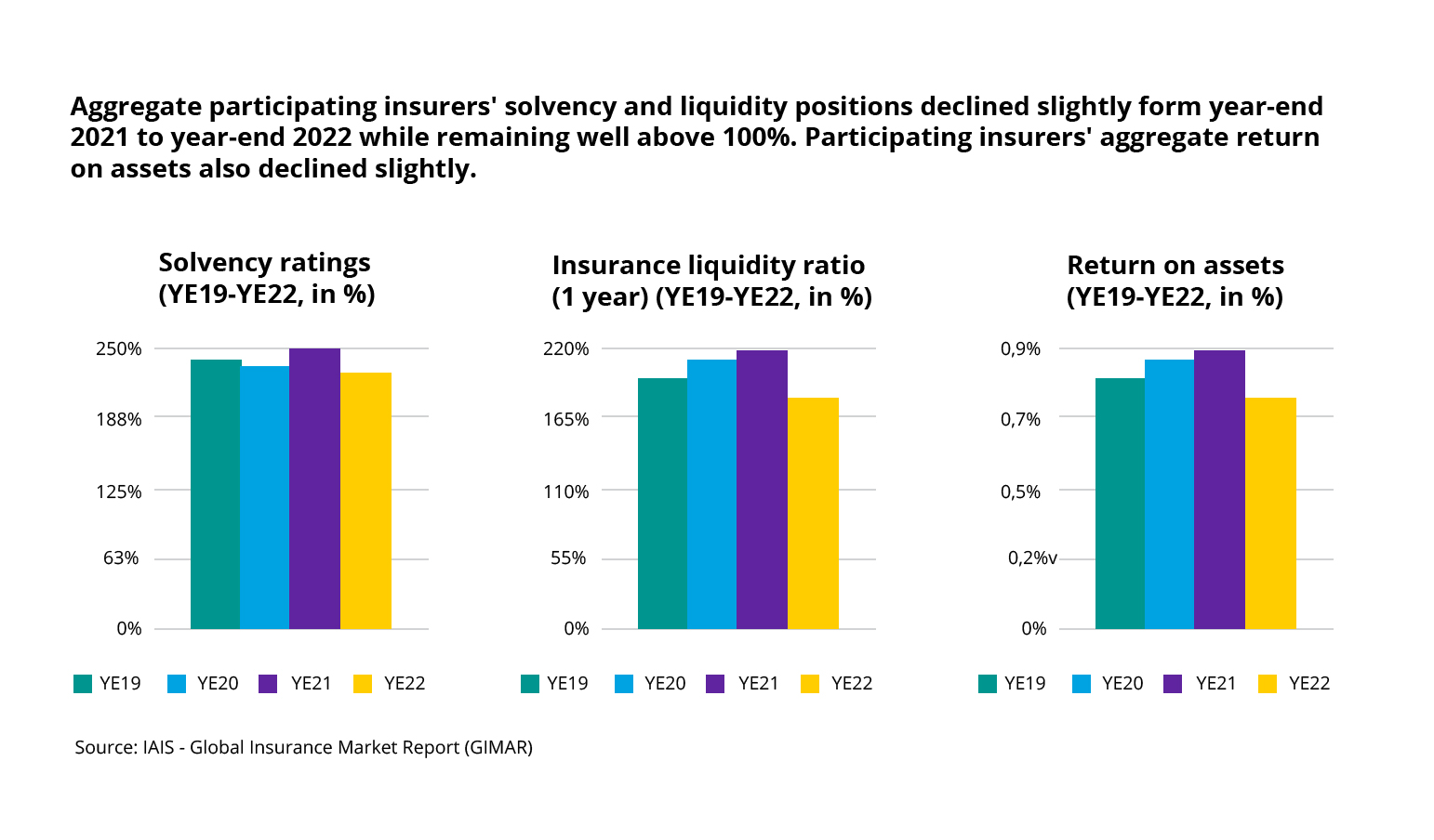 According to the International Association of Insurance Supervisors’ (IAIS) mid-year report, solvency ratios, insurance liquidity ratio, and return on assets all showed a slight decline in 2022. However, the recent failures in the banking sector didn’t have a significant impact on the insurers.