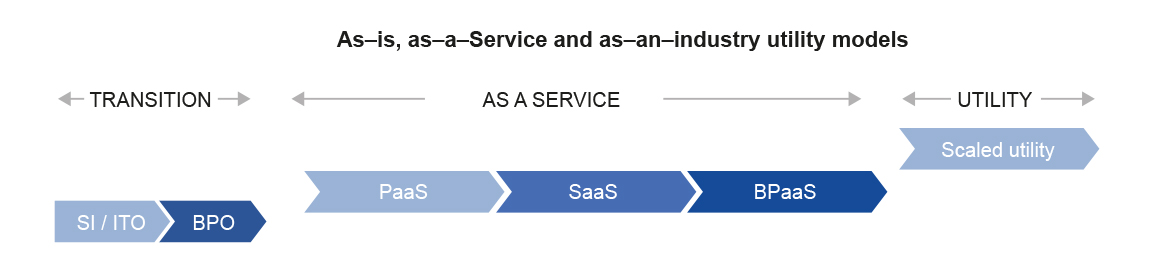 You’ll find several models in any transformation or adaptation. These models require transition programs — new, managed service offerings and a choice of levels for business processes. Each of these is a step along the journey that leads toward utility models with shared and common functionality that most likely will dominate the medium term.