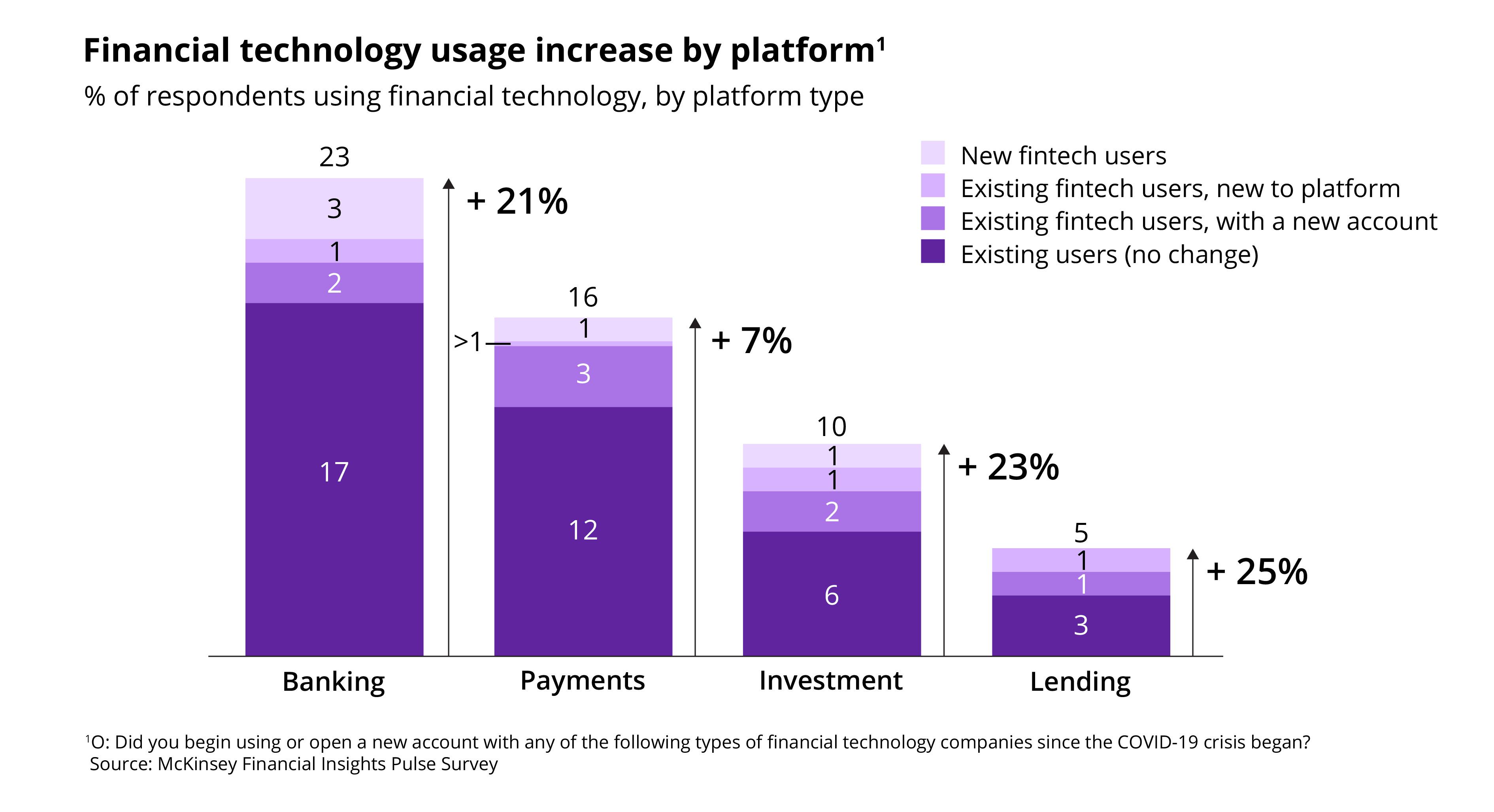 The pandemic only accelerated the digital-first approach to financial services. In the United States, 42% of surveyed consumers reported having at least one fintech account at the end of 2020. The pandemic prompted a 6% increase in the share of fintech users within as little as six months.