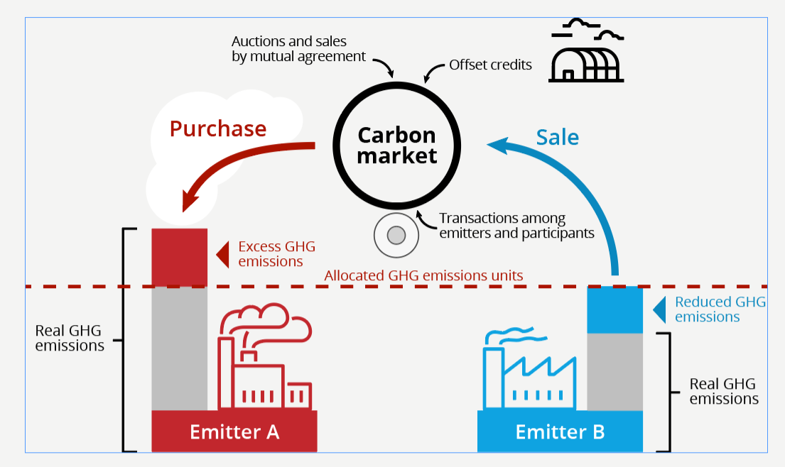 Carbon markets give a price to greenhouse gases and CO₂ emissions, transforming them into tradable commodities. This can be either carbon credits or offsets. Two markets trade them: