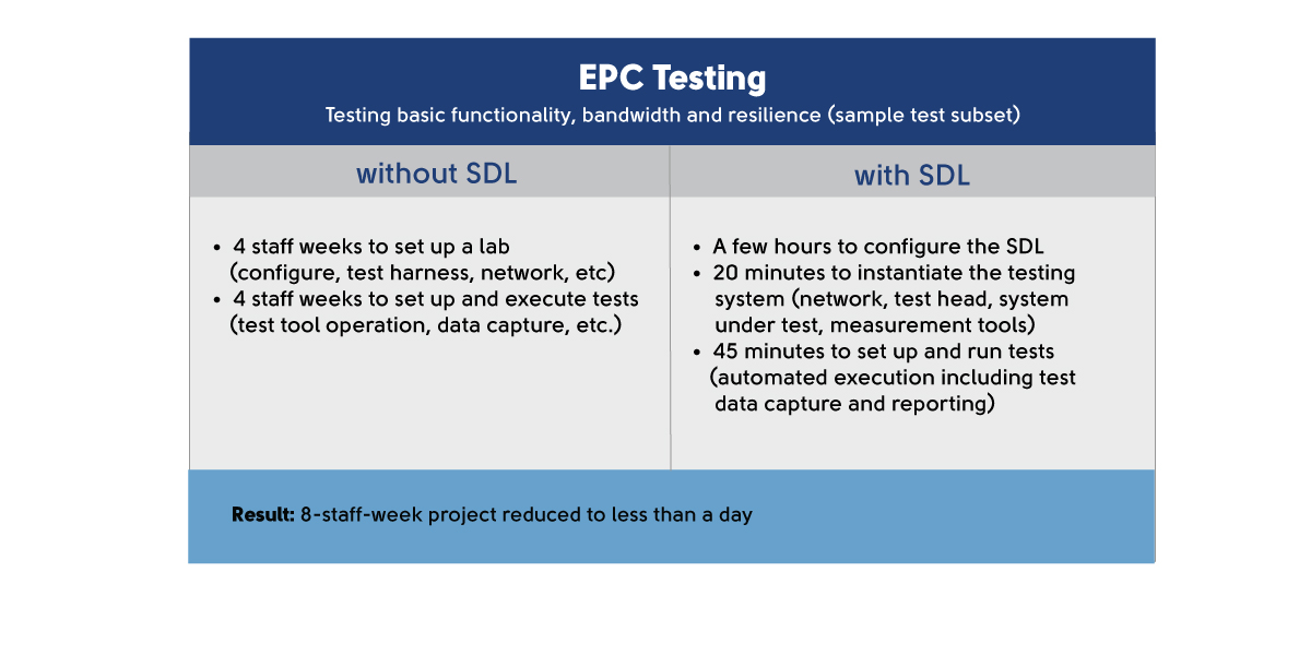 Challenge: A service provider and its network supplier need automated software testing of the components of an EPC from multiple vendors. Solution: Customer needs to evaluate multiple vendors and configurations of the components within an EPC.