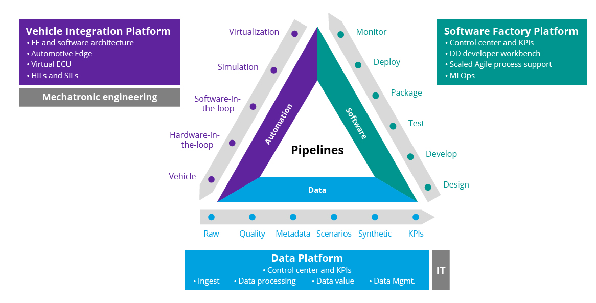 On top of the traditional engineering disciplines that mechanical and electrical engineers are so good at in the automotive industry, it’s vital to then add capabilities around software and data in a way so they’re run in a completely different manner: It’s really a tightly integrated and highly automated process which is walking us through different fidelities of data and phases of software development. In addition, automation needs to work on multiple layers — from digital-twin simulations to fully integrated production vehicles. These combined capabilities enable the automation of software development, and data-driven development and are at the core of the digital transformation of the automotive industry.