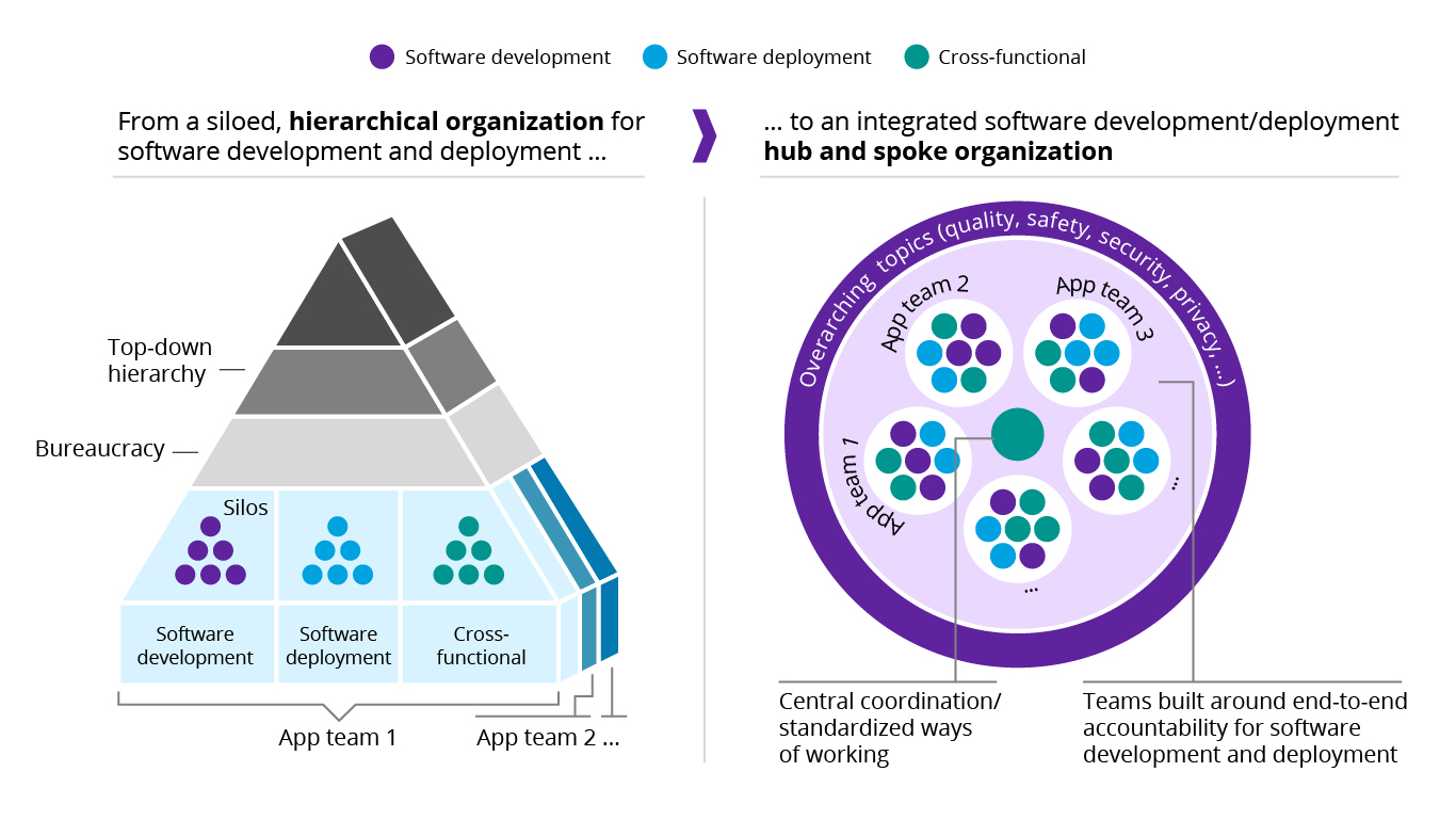 OEMs and their supply chain need to move away from traditional hierarchical organizations toward agile streams that work on different features and functions, combining the right people from different teams and restructuring them for the time being for the task at hand. This can be one of the most challenging parts of the transformation: Building interdisciplinary and cross-company teams, capable of working together effectively.