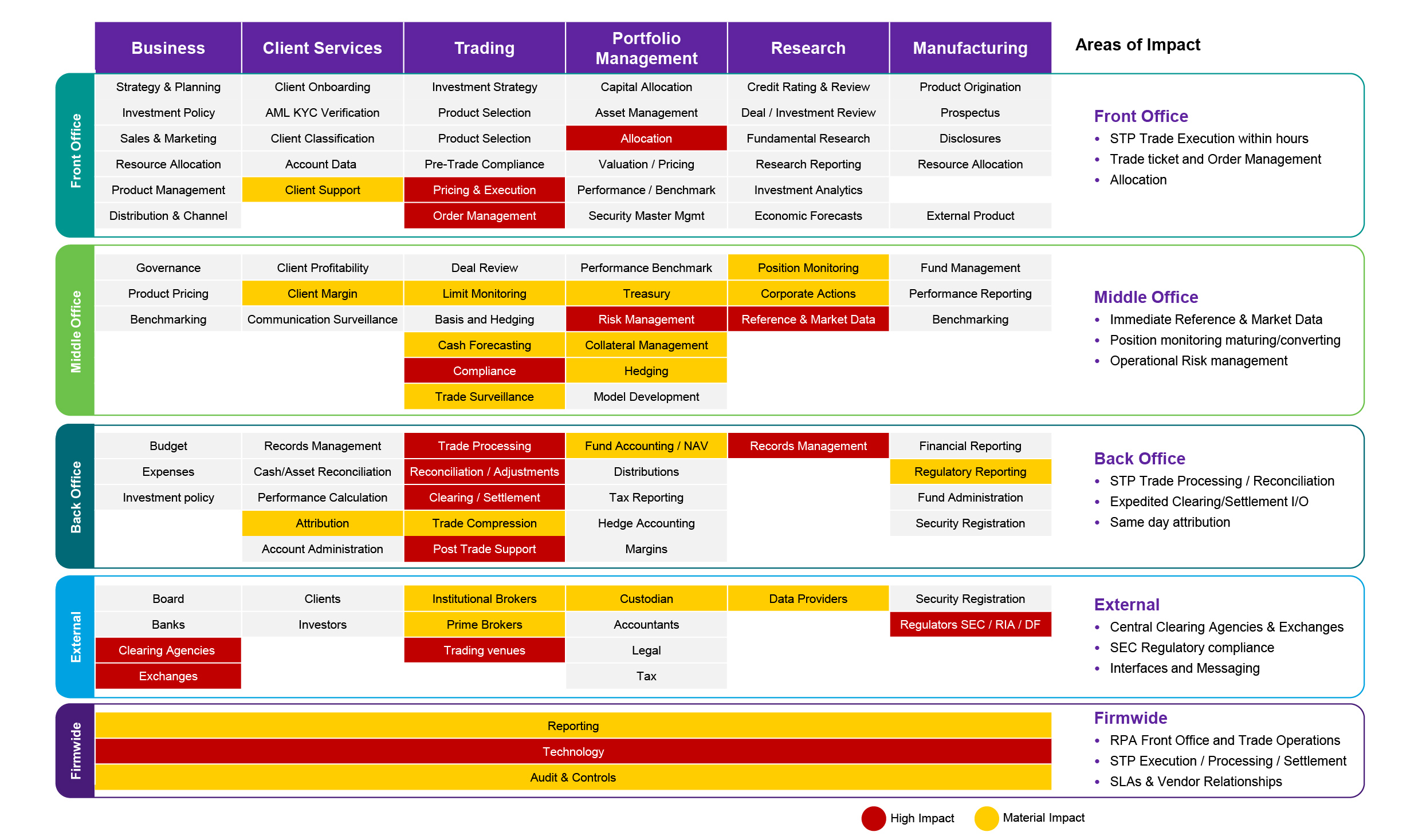 - Technology upgrade: Financial entities will need to consider replacing legacy technologies and processes with a comprehensive open platform and integrated post-trade framework. This proactive approach will help future-proof the organization