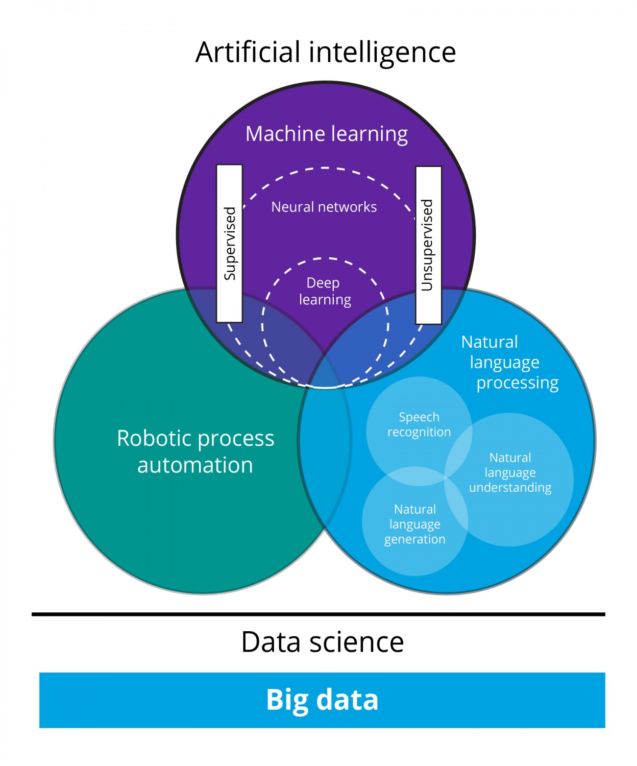 As AI’s core capability, machine learning (ML) drove the recent advances in artificial intelligence. ML enables the training of AI algorithms using large data sets, ideally, without human intervention. And as such, it relies heavily on the availability of big data, improving natural language processing (NLP) and robotic process automation (RPA).